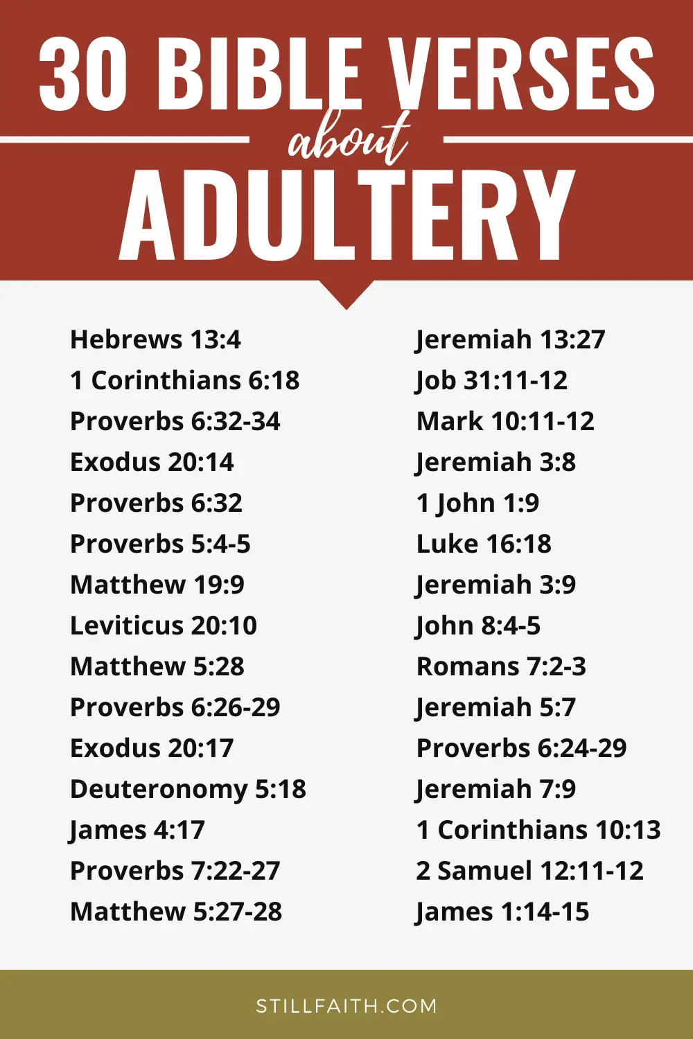 Here are 100 Bible verses about adultery, curated from both the Old and New Testaments of the Holy Bible, King James Version, arranged from most to least relevant.